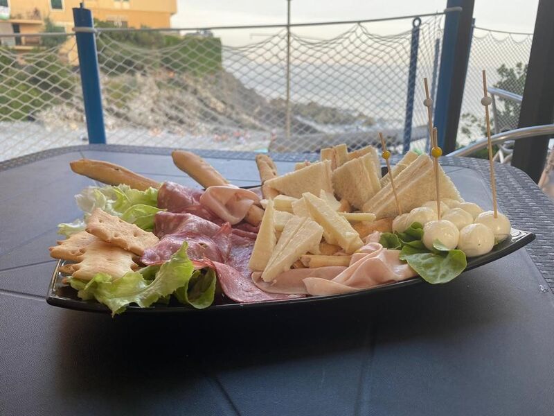 I nostri piattini da aperitivo e i nostri analcolici alla frutta. Il tutto con vista mare